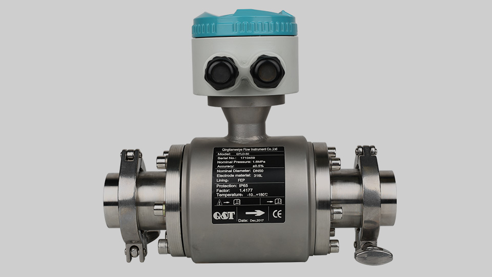 STLD卡箍式電磁流量計根據法拉第電磁感應定律進行流量測量。電磁流量計的優點是壓損極小,可測流量范圍大。更大流量與更小流量的比值一般為20:1以上,適用的工業管徑范圍寬,輸出信號和被測流量呈線性,精度較高,可測量電導率≥5μs/cm的液體。 QTLD電磁流量計卡箍式安裝方式具有安裝、清洗方便等優點,常應用于食品生產、制藥行業藥劑測量以及凈水監測等場合。